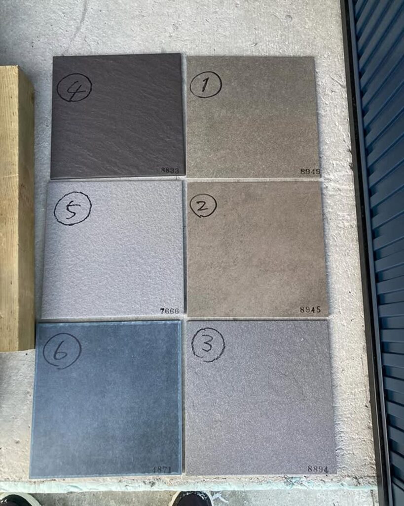 タイルのサンプル取ったので、これから施主様と一緒に選んで行きます。