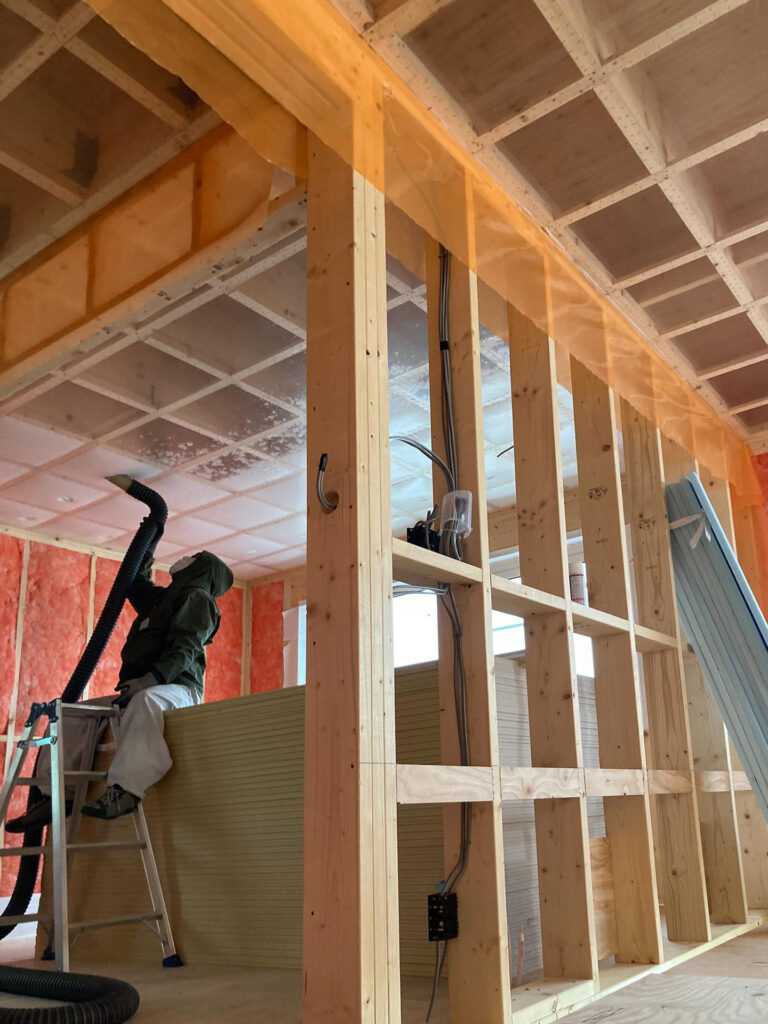 これは、たくさん吹けばいいというモノではなく、絶妙なさじ加減と経験が必要な工事。