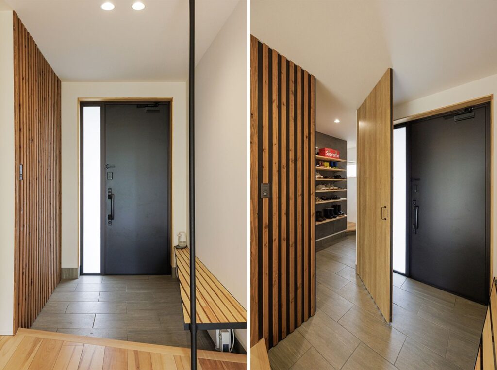 玄関横に隠し扉が!開けるとシューズクロークやパントリーがあります。