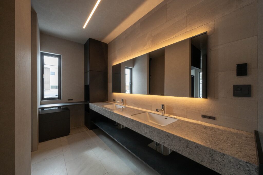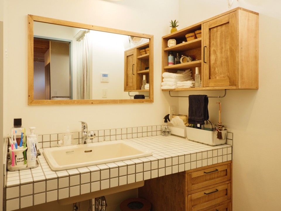 洗面台も細かな部分まで打合せを重ね、オリジナルで制作
